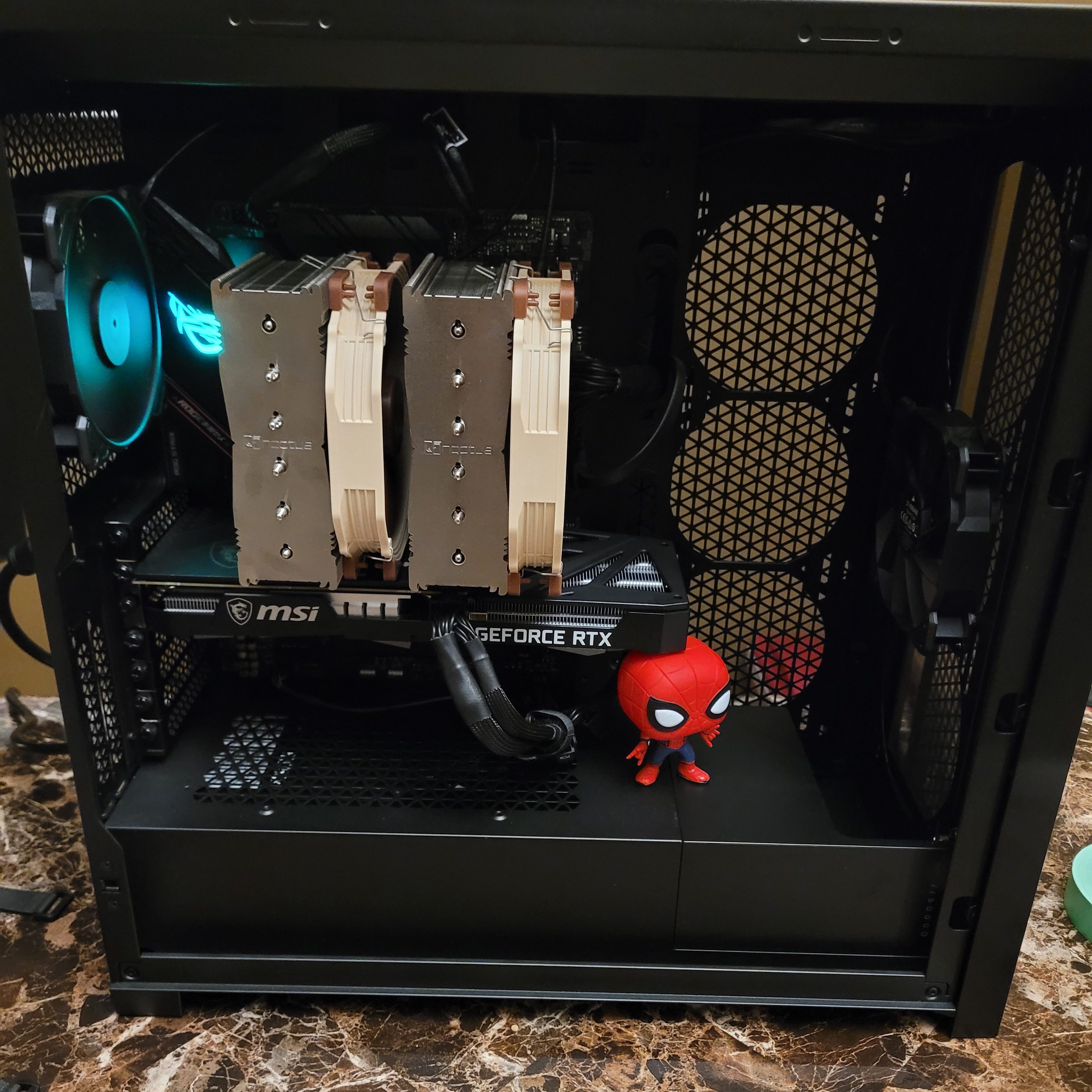 Although I had gained much more knowledge about computers over the years, this was still going to be my first time building my own computer so I called in some help. A friend of mine had built his own PC a year prior so I asked him to help out. After going with me to pick up the components, we went back to my apartment to start building. Overall, the build went well with very few issues. However, when we went to install the motherboard into the case we realized a problem. I had been given an old case by another friend but it was quite old and turns out it was missing the motherboard mounting hardware. In addition, it turns out the case was thinner than we thought and the big ol’ Noctua cooler wouldn’t fit with the side panel on. So, back we went to Memory Express to pick up a new case. I decided to go with a Corsair 5000D AIRFLOW, then, after a lunch break, the build went smoothly and it even posted on the first try. After a windows install and some driver updates I was all set. I finally have a kick ass PC that can do everything I want it to.